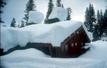 find its way through the smallest crack. III. THE INFLUENCE OF SNOW ON ROOF DESIGN Snow adds load to roofs where it falls on them. These loads are often more like dead loads than live loads. On low-sloped (flat) roofs these loads are often thought to be some fraction of ground snow load, but this can be a dangerous assumption as will be discussed below. Most designers assume that steeply sloping (4 in 12 or greater) roofs will shed the snow and many codes allow a reduction in load for such roof. But, the author's experiences have shown (Figure 2) that even slippery-sloped roofs do not reliably shed snow. The snow can be held on the roof by projections such as vent pipes, skylights or even standing metal ribs. (Figure 1) Perhaps the most serious deterrent to sloping roofs sliding their snow blanket is the ice dams that form at roof edges and behind roof projections. Building heat or solar radiation can cause the snow on the roof to melt. The melt water runs down the roof slope under the insulating blanket of snow and refreezes when it comes in contact with cold outside air. The ice formed adheres to the roof surface and prevents the snow from sliding as is discussed below. These ice dams can greatly increase roof loads and can cause very serious leaks. |