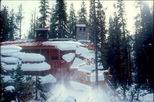 V. SLOPING ROOFS The design of sloped roofs in snowy regions has its own special set of problems. As with flat roofs, site orientation with respect to sun and storm winds can either exacerbate or mitigate roof snow accumulation. For example, a gable pitched roof with the ridge running east/west with a south storm wind will probably have the south facing portion of the sloped roof wind stripped of most of its snow cover and some of this blown onto the north portion of the roof. This drift surcharge load on the north side can become quite substantial. This north drift can easily build up over time as it is in shade from the southern sun, and solar melting will be minimal. Conversely, some mitigating drift effect will be achieved if the storm wind comes from the north. The north roof snow would be blown onto the south portion of the gable roof where more melting would occur. Alternately, a change in the ridge orientation here the ridge was in line with the storm winds would allow wind stripping to occur uniformly on each portion of the sloping gable roof in a manner somewhat similar to flat roofs. Drifting at projections and roof steps needs to also be considered as discussed above.Sloped roofs in snow country are best kept to very simple forms. Complex pitched shapes, dormers, valleys and multilevel steps all create a myriad of snow catchers and consequential unbalanced loading conditions and promote ice dams. Besides the loading problems, these shapes also create extremely difficult to solve flashing and waterproofing situations. Icing and ice dams can easily grow at these complex geometric intersections, further complicating the loading and waterproofing problems. Complex roof forms lead directly to roof leaks in snow country. A sloped roof in snow regions should always have at least one gable end where entering the building will not be hazardous due to snow or ice avalanching off the roof. Too many projects are de-signed with no consideration of where shedding roof snow will land. Many an automobile has been buried or severely damaged due to shedding snow and ice. People suffer the same fate with resulting severe injury or death. The designer must decide, "Do I keep the snow on the roof or do I let it shed off?" Roofing surfaces such as composition shingles and wood or concrete shakes tend to hold the snow on the roof. The granules and lapping layers of composition shingles allow the snow/ice to grip the sloping roof surface; similarly with shakes. The snow on these high coefficient of friction roofing materials tends to creep down toward the eave. If not restrained, the snow/ice will curl and eventually break loose and come crashing down. On the other hand, smooth metal roofing is very slippery with a melt water interface layer below the sloped roof snow. The snow will build up until the frictional resistance is overcome and then it will avalanche off almost instantly. Standing seams in metal roofs often freeze into snow blankets on the roof and then, when the snow slips, act as rails to accelerate the avalanche. (Figure 4) The ground impact zones for both the creep and sliding roof snow must be carefully allocated and designed to prevent damage or injury. Snow arresters (snow guards, fences) can be detailed to retain snow on the roof. Case Study Two, Mackinlay, Flood (1996) is an example of a steel bar as snow arrester at the eave. Concurrent with this arrester is an upslope, snow insulated and heat cable-traced gutter to intercept the melt water before it is exposed to freezing air, thus mitigating ice dam and icicle formation at the eave. The engineering for the loads imposed on snow arresters is explained by Tobiasson, Buska and Greatorex (1996). |