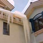 A steep, slippery roof can also mitigate ice dam formation to some extent. Generally, the steeper the roof and the more slippery the roofing material, the lower the probability of ice damming. However, steep, slippery roofs do not prevent ice dams if ice adheres to the roof edge. For example, with standing-seam metal roofs, it is not uncommon for snow and ice to freeze to the seams. In this case, the snow pack forms a bridge between standing seams, with its underside melted clear of the flat roof pan. When snow and ice avalanche off the roof, the snow runs on "rails" like a train, and the movement can be sudden and deadly (Figure 10). The designer must consider a "dump zone" for snow and ice below such roofs.