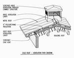 A cold roof is an upper roof that acts as an umbrella over the insulated structural roof below. It provides a ventilated air space, or cavity, between the two roofs. When the building loses heat through the lower warm roof, the heat is released into the air cavity, where it is ventilated and cooled by outside air before it can melt the snow pack on the upper roof (Figure 16). Cold roofs work best where midwinter air temperatures are low.