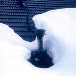 Slippery roofing such as metal, glass, slate, and some synthetic or metal shingles will allow the snow to slide or avalanche easily. In these cases, the falling snow must not create a hazard by dropping onto lower roofs, entries, walkways, balconies, parked cars, or people. It must fall into an area designed for this event, where the snow dump can be easily removed or simply allowed to remain throughout the winter. Also, sliding snow must not damage or shear off roof protrusions such as chimneys, skylights, or vents (Figure 18). Simple roof geometry is most important with slippery warm roofs.
